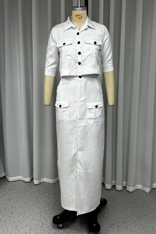 Casual Solid Pocket Buttons Slit Turndown Collar Half Sleeve Two Pieces
