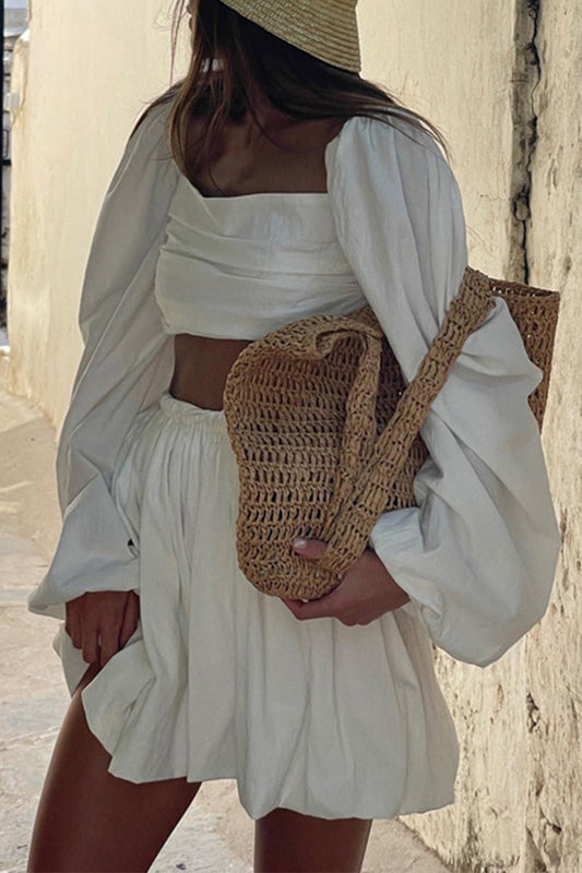 Sexy Solid Frenulum Fold Square Collar Long Sleeve Two Pieces