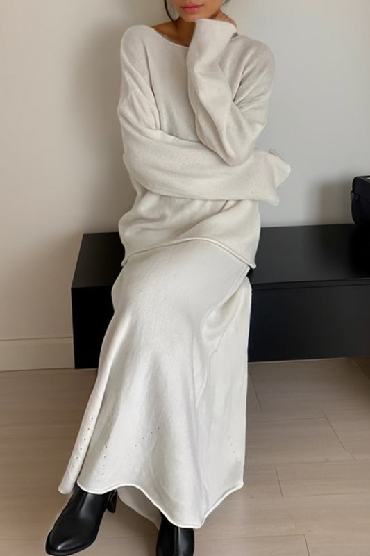 Elegant Solid O Neck Long Sleeve Two Pieces(4 Colors)