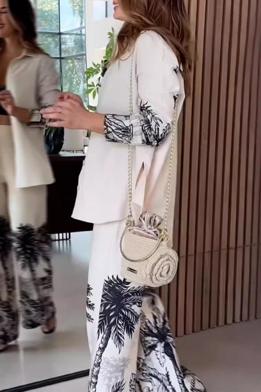 Casual Landscape printing Buttons Turndown Collar Long Sleeve Two Pieces