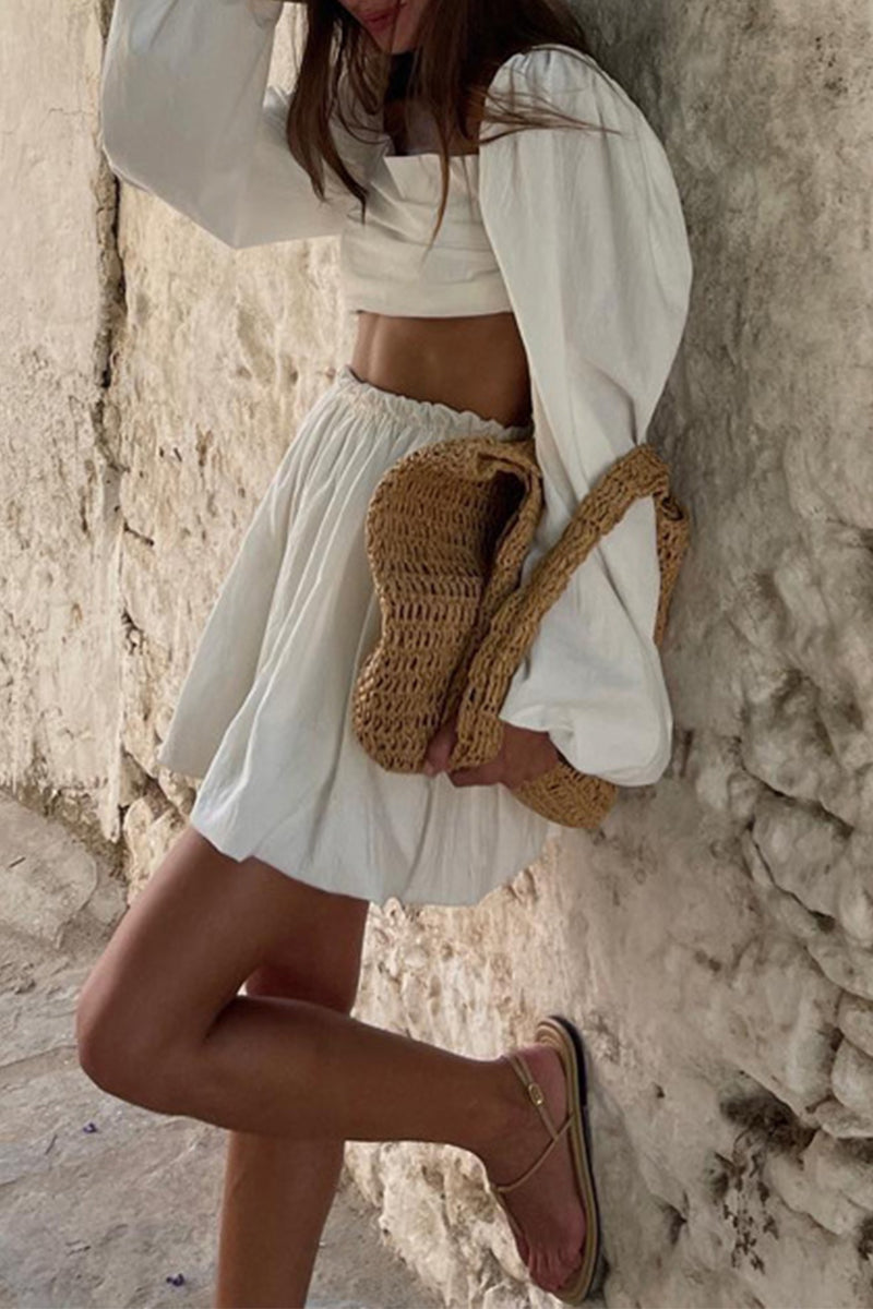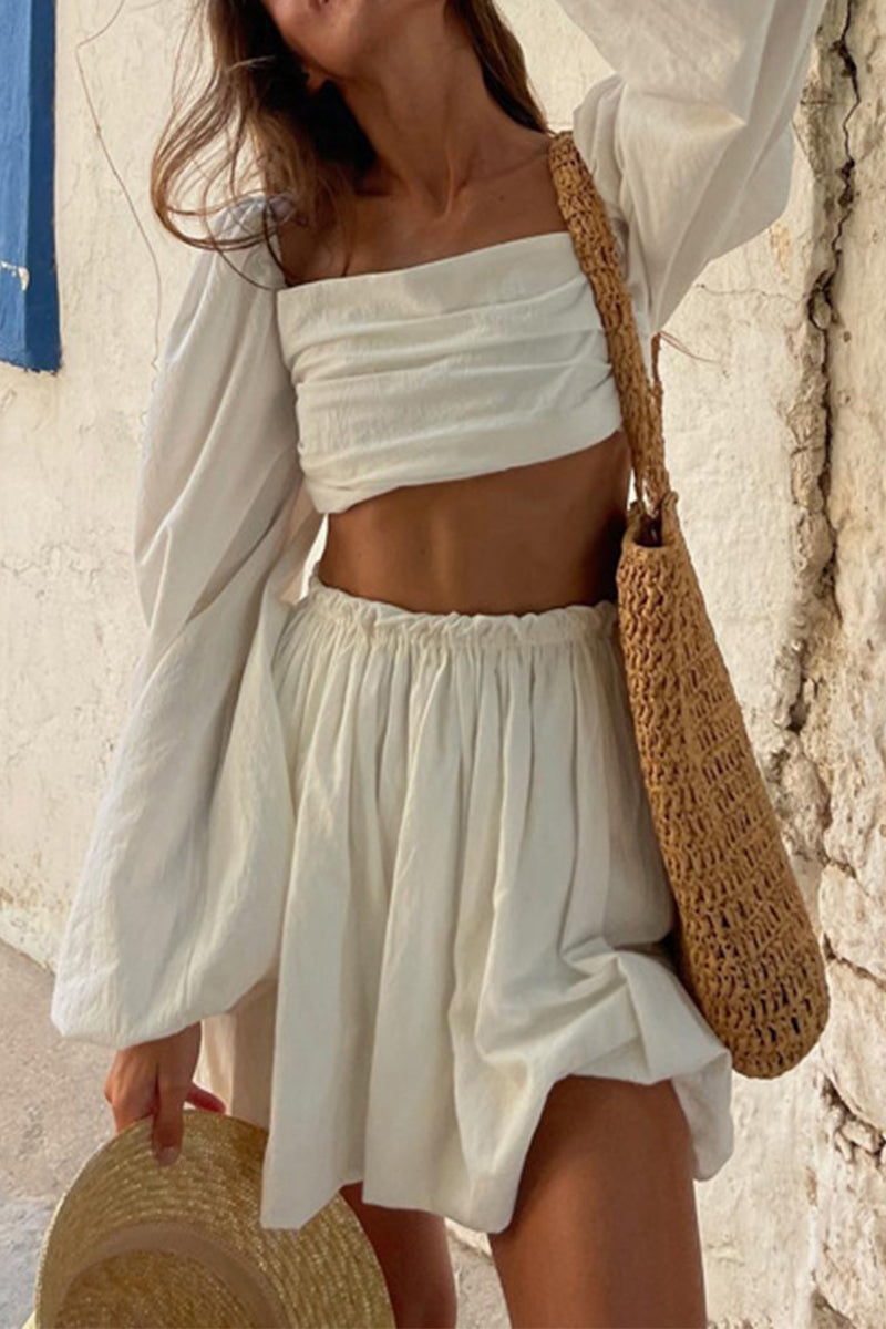 Sexy Solid Frenulum Fold Square Collar Long Sleeve Two Pieces